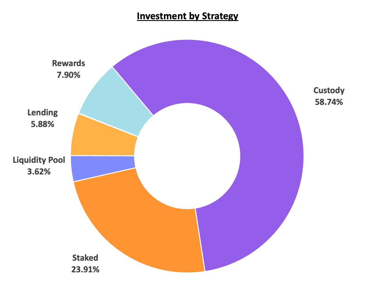 ~84% of all assets are secured via cold storage, the industry’s highest standard for keeping assets safe. The other 15% of fund assets are on Kraken, known for its robust security standards.