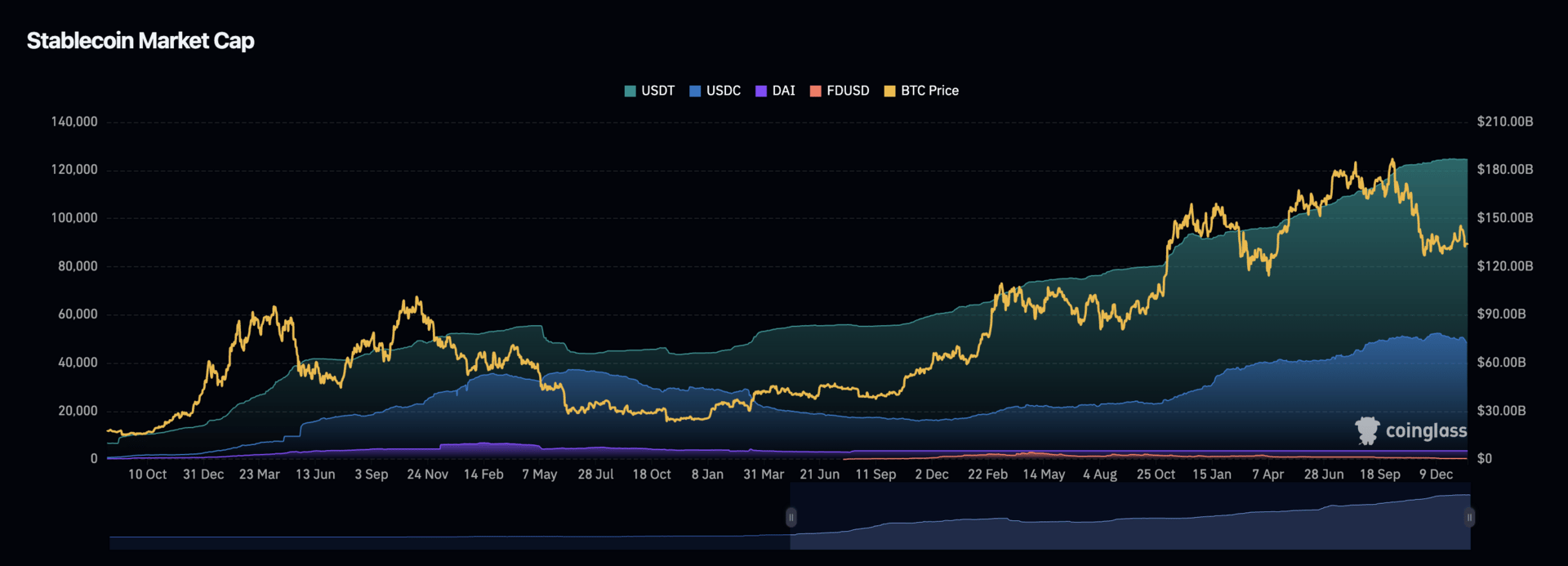 Stablecoin supply kept expanding. USDT and USDC market caps are at all-time highs. Capital didn't leave - it moved to the sidelines, waiting.